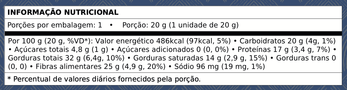 Selecionados por sua riqueza em nutrientes essenciais para o organismo e gorduras do bem, que desempenham um papel fundamental no bom funcionamento do intestino. Nosso compromisso é oferecer produtos que promovam saúde, equilíbrio e bem-estar de forma natural e genuína.